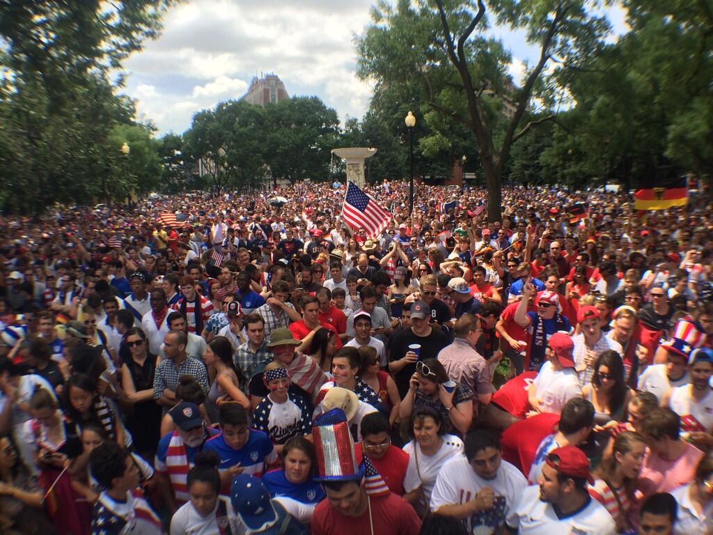 Todo eso estuvo bien, pero una de las mejores cosas de la semana fue ir a ver el partido a Dupont Circle, una plaza en el centro de la ciudad donde había quizá mil personas viendo el partido en dos pantallas gigantes, pero yo estaba un poco lejos: